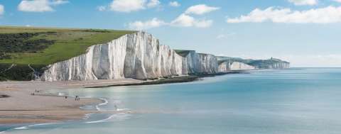 De witte krijtrotsen van Dover, de Seven Sisters aan de kust van Sussex en de imponerende kliffenkust van het eiland Wight staan op menig ansichtkaart. Maar er zijn ook lange zandstranden aan de zuidkust te vinden. Met mondaine badplaatsen zoals Brighton en Eastbourne en kleine dorpen zoals Winchelsea en Littlestone-on-Sea. De plaats Rye, oorspronkelijk een vissersdorp, is inmiddels zodanig door zand omgeven dat het nu een paar kilometer landinwaarts ligt en uitgegroeid is tot een bekend antiekcentrum.
